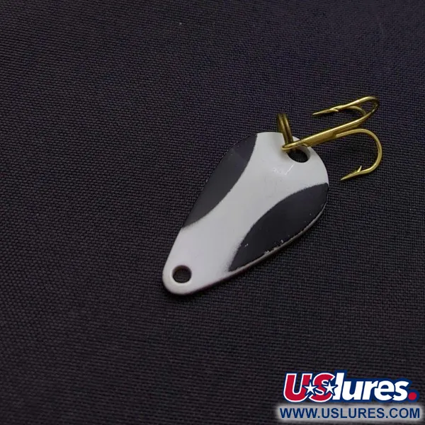 Auf der polierten Rückseite im Gold-Finish ist der bekannte Name K.O. WOBBLER deutlich eingeprägt, was diesen Köder als Klassiker aus dem US-Sortiment von Acme kennzeichnet. Mit einem Gewicht von 3,5 g (1/8 oz) und einer kompakten Länge von 3 cm (1 1/4") verfügt der Körper über ein markantes, kontrastreiches Muster in Weiß und Schwarz auf goldener Basis. Diese spezielle Farbkombination ist auf maximale Sichtbarkeit unter verschiedenen Lichtverhältnissen ausgelegt. Der Blinker ist mit originalen goldfarbenen Komponenten ausgestattet, darunter ein stabiler Sprengring und ein scharfer Drilling, was eine sichere Verbindung beim Werfen oder Schleppen gewährleistet. Im Zustand 5/5 präsentieren sich die lackierten Oberflächen makellos, und der Messingkörper behält seinen glänzenden Schimmer. Unter dem Produktcode 24191 gelistet, verkörpert dieser Blinker die Langlebigkeit, die mit der Tradition von Acme in der Herstellung zuverlässiger Metallköder seit der Mitte des 20. Jahrhunderts verbunden ist. Die Tropfenform und die Gewichtsverteilung sind speziell für hohe Wurfweiten mit leichtem Spinngeschirr konzipiert.