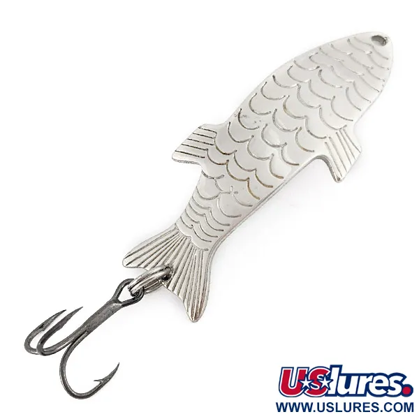 Geprägt mit einem detailreichen Schuppenmuster, das dem Metallkörper eine dreidimensionale Textur verleiht, ist dieser Köder ein klassisches Beispiel amerikanischer Handwerkskunst. Dieser Acme Phoebe, identifiziert durch den Produktcode 22478, weist das charakteristische geschwungene Fischprofil auf, das dieses Modell seit Generationen zu einem festen Bestandteil in vielen Angelkisten macht. Mit einem Gewicht von 7 g (1/4 oz) ist der Blinker aus einem massiven Stück Metall gefertigt und in einem glänzenden, reflektierenden Silber gehalten. Die Vorderseite ist mit feinen Reihen überlappender Schuppen und angedeuteten Flossensegmenten geprägt, während auf der konkaven Rückseite der Name PHOEBE in sauberer, gut lesbarer Schrift eingestempelt ist. Zur Ausstattung gehören ein dunkel beschichteter Drillingshaken, der mit einem stabilen Sprengring am Ende befestigt ist, sowie eine präzise gebohrte Schnuröse an der Spitze. Die Oberfläche ist hochglanzpoliert und frei von sichtbaren Gebrauchsspuren oder Korrosion, was einer Zustandsbewertung von 5/5 entspricht. Dieses Metalldesign ist speziell für weite Würfe ausbalanciert und lässt sich in verschiedenen Wassertiefen führen.