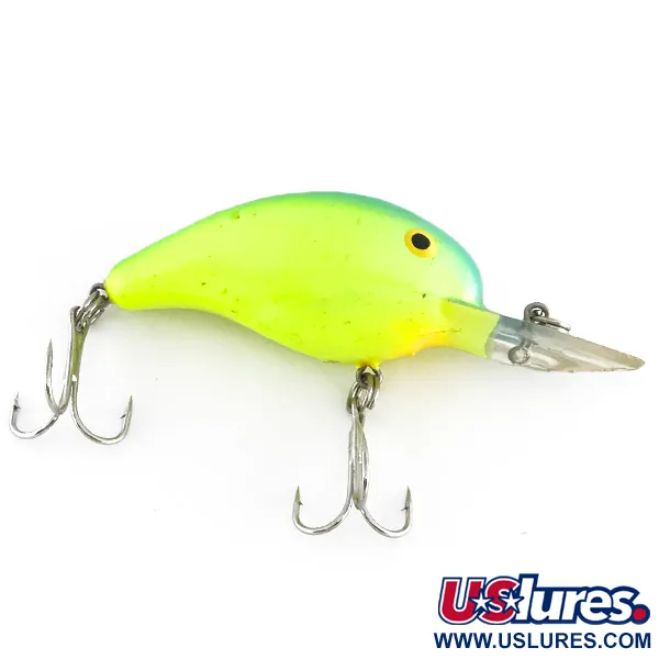 Ein leuchtendes Chartreuse-Pigment dominiert diesen 5 cm (2") langen Köder, der über eine spezielle UV-Beschichtung verfügt, die unter Schwarzlicht intensiv leuchtet und so für zusätzliche Sichtbarkeit in trüben Tiefen sorgt. Mit einem Gewicht von 7 g (1/4 oz) ist der Bandit 200 UV (Artikelnummer 8068) für Tauchtiefen von bis zu 3 m (10 ft) konzipiert, was ihn zu einem Standard für das Werfen oder Schleppfischen im Mittelwasser macht. Dieser spezifische Köder weist Gebrauchsspuren in Form von charakteristischen Hakenabdrücken an den Flanken auf, was ihm eine Zustandsbewertung von 3/5 einbringt. Seine interne Rasselkammer sorgt für eine akustische Präsenz, während die robuste, klare Tauchschaufel für konstante Leistung beim Angeln auf Arten wie Hecht oder Zander ausgelegt ist. Das klassische schwarze Auge mit gelbem Ring ist vor einem dezenten Übergang von Grün zu Türkis entlang des Rückens gesetzt. Hergestellt in den USA, umfasst die Hardware zwei scharfe Drillingshaken, die mit Sprengringen gesichert sind.