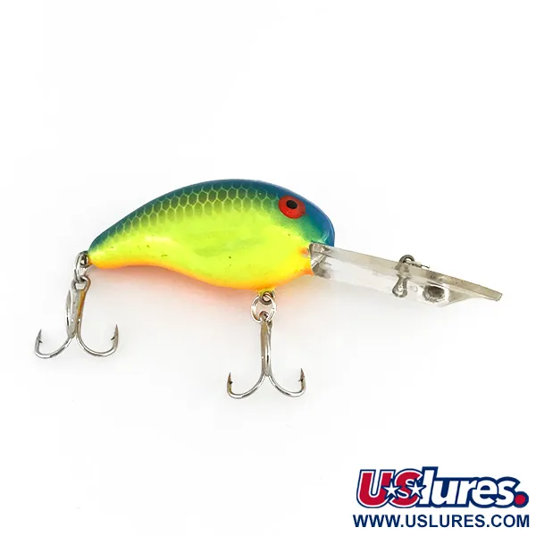 Mit einer Tauchtiefe von 2-3 m (6,5-10 ft) ermöglicht die markante klare Tauchschaufel dieses Bandit 300 einen effektiven Grundkontakt beim Angeln auf Hecht oder Zander. Dieser 8,5 g (1/3 oz) schwere Crankbait ist 5 cm (2") lang und verfügt über ein gut sichtbares Schuppenmuster in Limonengelb und Blau. Ein spezielles Glow-in-the-Dark-Finish macht den Artikel 8098 zu einer funktionalen Wahl für die Dämmerung oder trübes Wasser. Jedes Detail des Köders ist in einem 5/5-Zustand, vom leuchtend orangefarbenen Bauch bis hin zu den originalen Drillingshaken und der internen Rasselkammer. Hergestellt in den USA, ist der Köder sowohl zum Werfen als auch zum Schleppen konzipiert.