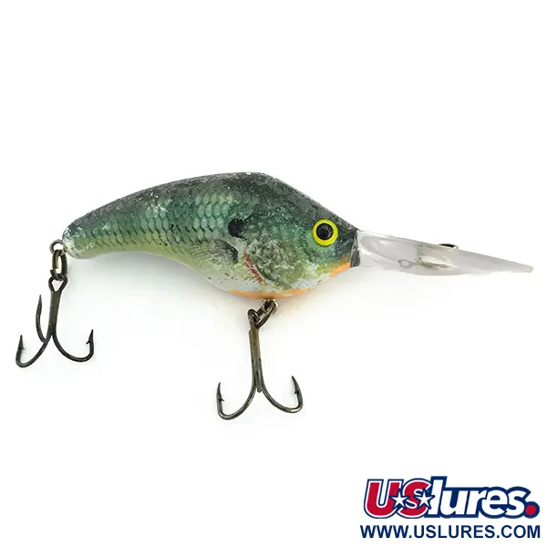 Mit einem Gewicht von 24 g (3/4 oz) ist dieser Tiefläufer darauf ausgelegt, Tiefen zwischen 4,2 m (14 ft) und 5,4 m (18 ft) zu erreichen. Das Perch-Farbmuster dieses Bandit 700 besticht durch eine detaillierte grüne Schuppentextur auf dem Rücken, die in einen dezent orangefarbenen Bauch übergeht. Bei einer Länge von 7 cm (2 3/4 Zoll) verfügt der Köder über eine große, klare Tauchschaufel aus Kunststoff, die sowohl zum Werfen als auch zum Schleppangeln geeignet ist. Dieses in den USA hergestellte Modell mit dem Produktcode 9397 besitzt interne Rasseln zur Unterwasser-Geräuscherzeugung, die gezielt auf Fischarten wie Hecht und Zander ansprechen. Die Hardware besteht aus zwei dunkel beschichteten Drillingen, die mit robusten Sprengringen befestigt sind. Der Zustand ist mit 4/5 bewertet und zeigt ein sauberes Finish mit minimalen Gebrauchsspuren. Gelb umrandete Augen sind fest im Kopf eingesetzt und bieten einen klassischen visuellen Fixpunkt gegenüber den dunkleren Grüntönen des Körpers.