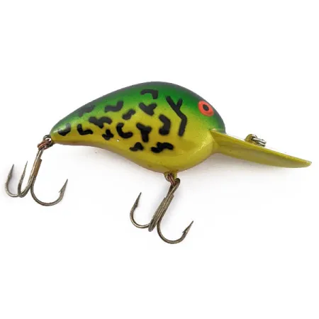 Dieser 17 g (3/5 oz) schwere Bomber Fat A B06F besticht durch sein markantes, reflektierendes G-Finish in Grün, das das Licht über sein breites Profil optimal einfängt. Mit einer Länge von 6 cm (2 1/4") ist dieser schwimmende Crankbait auf Tiefe ausgelegt und erreicht dank seiner markanten Tauchschaufel Bereiche zwischen 2,4 und 3,0 m (8–10 ft). Das Farbschema zeigt einen lebendigen Verlauf, der von einem metallisch-goldenen Bauch in einen tiefgrünen Rücken übergeht, ergänzt durch kräftige schwarze Punkte im Leopard-Stil. Dieses in den USA hergestellte Modell mit dem Produktcode 18324 befindet sich in einem makellosen Zustand (Bewertung 5/5). Ausgestattet mit zwei Original-Drillingen und klassisch rot-orangen Augen, ist dieser Köder eine hervorragende Wahl für das gezielte Angeln auf Barsch oder Döbel in tieferen Gewässerstrukturen.