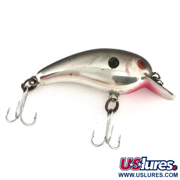 Mit einem Gewicht von flinken 4 g (1/8 oz) stellt dieser in den USA hergestellte Vintage-Crankbait ein wichtiges Kapitel der Tackle-Geschichte dar. Das silberne Chrom-Finish dieses 4 cm (1 1/2") langen Cotton Cordell Big O (Artikelnummer: 7818) ist extrem reflexionsstark und wird durch einen markanten schwarzen Punkt sowie einen rosaroten Akzent im Kehlbereich ergänzt. Als schwimmendes Modell erreicht er beim Wurf auf Barsch, Hecht oder Rapfen Lauftiefen von bis zu 0,9 m (3 ft). Die Hardware, einschließlich der Drillinge und Sprengringe, ist hervorragend erhalten, was den 5/5-Zustand dieses Exemplars unterstreicht. Ursprünglich in den USA gefertigt, sind die bauchige Körperform und die kurze Tauchschaufel des Big O Markenzeichen seines Designs, optimiert für Präsentationen im Flachwasser. Jedes Detail der Lackierung, vom rot umrandeten Auge bis zu den glatten Übergängen der Silberbeschichtung, spiegelt die von Sammlern erwartete Qualität wider.