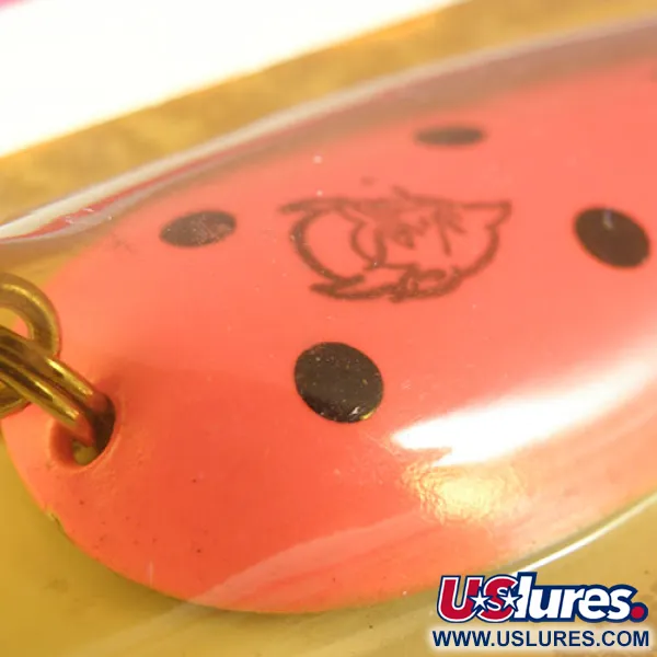 Orangefarbene und schwarze Punkte prägen das Dekor dieses robusten 21 g schweren Blinkers. Mit einer Länge von 7 cm wird dieser Eppinger Dardevle unter dem Produktcode 0517 in unbenutztem Zustand geliefert, noch originalverpackt im rot-weißen Blister. Das Etikett weist auf die Herstellung durch die Eppinger MFG. Company in Dearborn, Michigan, hin, wohin das Unternehmen 1959 umzog. Das eingestanzte „Devil Head“-Logo ist deutlich zentriert auf dem Löffel zu sehen – ein Markenzeichen, das untrennbar mit den Originalentwürfen von Lou Eppinger aus dem Jahr 1906 verbunden ist. Ausgestattet mit einem stabilen Drilling und einem breiten, konkaven Körper, ist der Köder perfekt für das Wurfangeln oder Schleppen ausbalanciert. Das leuchtende Orange und die kontrastierenden schwarzen Punkte sind charakteristisch für die vielen Farbmuster, die das Unternehmen in seiner über hundertjährigen Geschichte entwickelt hat. Jedes Detail, von den proprietären gestanzten Kanten bis hin zu den kontrastreichen Grafiken, spiegelt die Qualität der in den USA hergestellten Angelausrüstung aus dieser Ära wider.