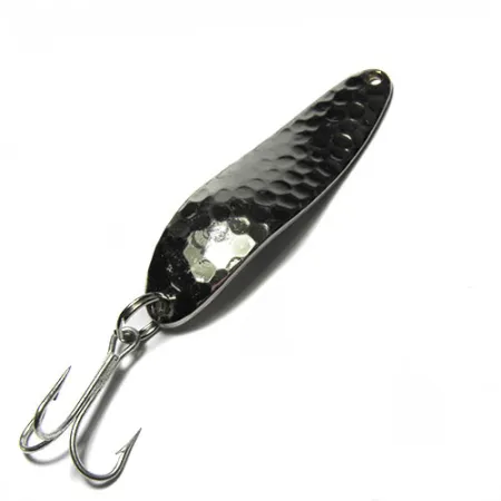 Gehämmerte Nickeloberflächen prägen die Vorderseite dieses 1/3oz (10g) Vintage-Blinkers – eine Textur, die von Eppinger gezielt entwickelt wurde, um Licht in alle Richtungen zu reflektieren. Mit einer Länge von 5,5 cm (2 1/4") trägt dieser Dardevle Cop-E-Cat 7300 die markante Prägung „DETROIT U.S.A.“ auf seiner konkaven Rückseite, ein klarer Beleg für die frühen Produktionswurzeln des Unternehmens vor dem Umzug nach Dearborn im Jahr 1959. Als authentisches Modell unter der Artikelnummer 0418 weist dieses Exemplar eine polierte konkave Innenseite auf, die einen wunderschönen Kontrast zur gedellten Außenseite bildet. Dieser spezifische Köder befindet sich in einem 5/5-Zustand und präsentiert sich bemerkenswert gut erhalten mit scharfen Drillingshaken und einem stabilen Sprengring. Lou Eppingers Qualitätsanspruch zeigt sich in der massiven Prägung und der proprietären Stanzform, die dafür sorgte, dass diese Köder sogar in Überlebenskits für die Luftfahrt im Krieg eingesetzt wurden. Die Gewichtsverteilung ist zentriert, um weite Würfe vom Ufer oder Boot aus zu unterstützen, während das silberfarbene Nickel-Finish für maximale Sichtbarkeit bei unterschiedlichen Trübungsgraden sorgt.