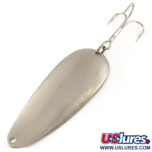 Dieser Löffelblinker ist auf der konkaven Seite mit den markanten Kennzeichnungen „DARDEVLET“, „DETROIT“ und „USA“ versehen und stellt ein geschichtsträchtiges Fundstück aus dem Hause Eppinger dar. Dieses Modell in Mattsilber mit dem Produktcode 12261 hat eine Länge von 7 cm (2 3/4") und ein Gewicht von 21 g (3/4 oz), was es zu einer hervorragenden Wahl für tiefere Gewässerschichten macht. Die saubere, nicht reflektierende Oberfläche bietet eine spezielle Präsentation im Vergleich zu Hochglanzmodellen und erweist sich in klarem Wasser als äußerst zuverlässig. Der Köder befindet sich in einem bemerkenswerten Zustand (Bewertung 5/5) mit einer gleichmäßigen Oberfläche und einem stabilen Drilling. Während Eppinger die Produktion 1959 nach Dearborn verlegte, werden diese in Detroit geprägten Blinker von Sammlern aufgrund ihrer historischen Verbindung zu Lou Eppingers ursprünglichen Wurzeln in Michigan sehr geschätzt. Die Tropfenform und die spezifische Gewichtsverteilung sind auf effektive Wurf- und Schlepptechniken ausgelegt.