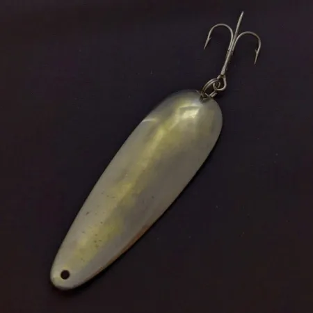 Auf der konkaven Seite mit „DARDEVLE DETROIT U.S.A.“ gestempelt, weist die Metalloberfläche diesen Blinker als Eppinger-Klassiker aus der Mitte des 20. Jahrhunderts aus. Mit einer Länge von 9 cm (3 1/2") dient das Nickel-Finish als zuverlässiger Lockfaktor, der das Licht durch die Wassersäule reflektiert. Ein Gesamtgewicht von 28 g (1 oz) macht ihn zu einer soliden Wahl für Würfe gegen den Wind oder zum Erreichen großer Tiefen beim Angeln auf Hecht oder Muskellunge. Der Zustand wird mit 4/5 bewertet, wobei die plattierte Oberfläche auf dem breiten, tropfenförmigen Körper eine klare Reflexion beibehält. Historisch in den Zeitraum von den 1950er bis 1980er Jahren eingeordnet, bleibt dieses Exemplar ein funktionsfähiges Beispiel für die Geräteherstellung aus Detroit. Diese spezielle Spoon-Variante wird unter dem Produktcode 24605 geführt.