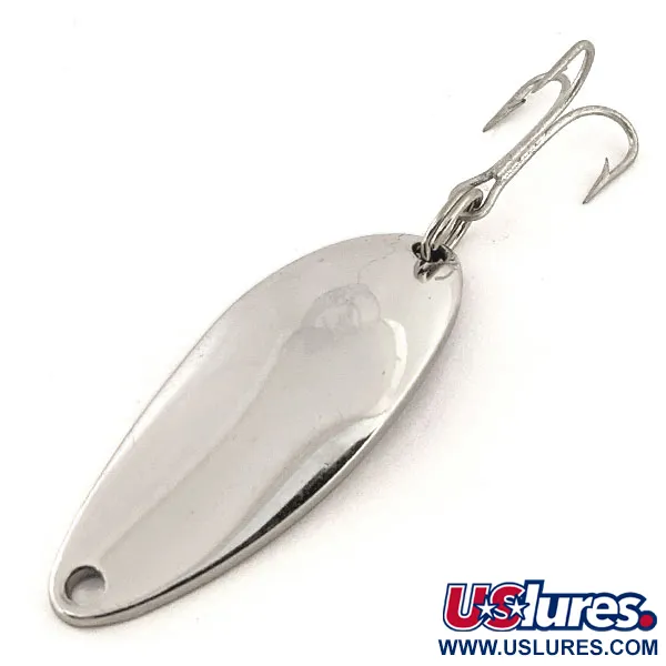 Auf der konkaven Innenseite deutlich mit „DEVLE-DOG 5200 DETROIT USA“ gestempelt, repräsentiert dieser vernickelte Blinker ein klassisches Kapitel der Fertigungsgeschichte von Eppinger. Mit einer Länge von 4 cm (1 1/2") und einem Gewicht von 7 g (1/4 oz) bietet er ein kompaktes Profil zum Auswerfen oder Schleppfischen. Das polierte Nickel-Finish wurde aufgrund seiner starken Lichtreflexion gewählt, was ihn zu einer zuverlässigen Wahl in klarem Wasser macht, wo er das natürliche Aussehen kleiner Beutefische imitiert. Dieses Exemplar mit der Artikelnummer 12822 ist mit einem Drilling und einem Sprengring ausgestattet, die die robuste Funktionalität widerspiegeln, die Eppinger ab 1906 in Detroit etablierte. Der Zustand wird mit 5/5 bewertet, da die Metalloberflächen sauber und frei von nennenswerten Gebrauchsspuren sind. Die Prägung weist darauf hin, dass er aus der Ära vor dem Umzug des Unternehmens nach Dearborn im Jahr 1959 stammt, was seine historische Verbindung zu den frühen Erfolgen der Marke mit eigenen Metallmatrizen unterstreicht.