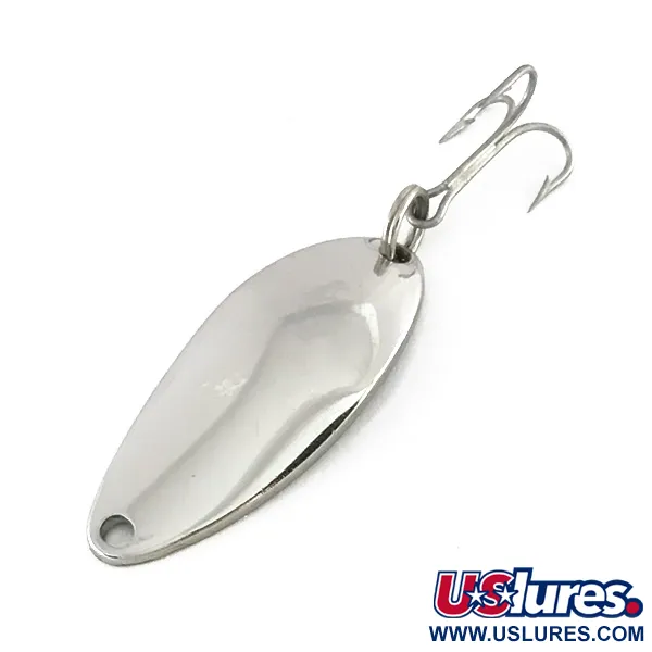 In das glänzende Metall ist deutlich die Markierung "DEVLE-DOG 5200 DETROIT U.S.A." eingeprägt, die diesen Klassiker der amerikanischen Angelgeschichte von Eppinger kennzeichnet. Dieser 4 cm lange Blinker verfügt über ein hochglänzendes Nickel-Finish, das erfahrene Angler oft wählen, um in klarem Wasser maximale Lockwirkung zu erzielen. Mit einem Gewicht von 7 g bietet das Modell mit der Artikelnummer 8150 ein vielseitiges Profil, das sich hervorragend an leichtem bis mittlerem Gerät werfen lässt. Das Design basiert auf den proprietären Matrizen, die Eppinger seit den Anfängen der Marke in Detroit verwendet, was die spezifische Geometrie garantiert, die seit Generationen die Angelkästen füllt. Er ist mit einem scharfen Drilling und einem starken Sprengring ausgestattet. Dieses Exemplar befindet sich in exzellentem Zustand (Bewertung 5/5) mit spiegelnder Oberfläche und perfekt erhaltenen Kleinteilen. Beim Angeln mit einem solchen Blinker ist ein gleichmäßiges Einkurbeln Standard, obwohl viele Angler Erfolg haben, indem sie die Rutenspitze leicht anlupfen, um den Köder in den Pausen verführerisch taumeln zu lassen.