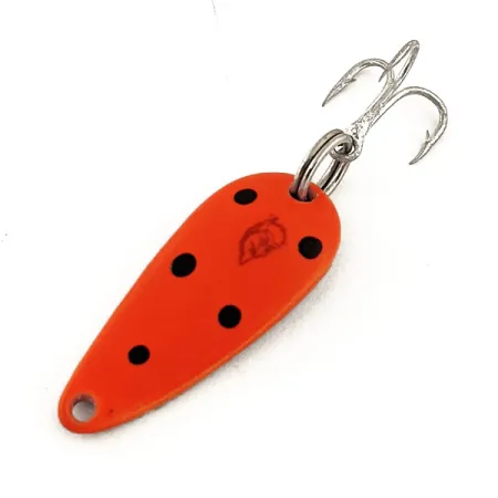 Markante schwarze Punkte bilden einen scharfen Kontrast zur fluoreszierenden orangeroten Oberfläche dieses 3 cm langen Blinkers. Mit dem kultigen Teufelskopf-Logo versehen, trägt dieser Eppinger Dardevle Lildevle UV den Produktcode 12820. Die Nickel-Rückseite sorgt für zusätzliche Lichtreflexe, während die spezielle Lackierung unter UV-Licht stark leuchtet – eine moderne Interpretation des Erbes aus Michigan, das bis zu den Originalentwürfen von Lou Eppinger aus dem Jahr 1906 zurückreicht. Mit 3,4 g (1/8 oz) bietet er eine ausreichende Dichte für präzise Würfe zu Unterständen oder Fischschwärmen. Zur Ausstattung gehören ein stabiler Sprengring und ein scharfer silberner Drilling, beide in exzellentem Zustand mit einer 5/5-Bewertung. Die firmeneigenen Matrizen von Eppinger verleihen diesem Blinker sein charakteristisches konkaves Profil, das seit dem Umzug des Unternehmens nach Dearborn im Jahr 1959 sorgfältig beibehalten wurde. Die kompakte Größe und das auffällige Finish machen ihn zu einer verlässlichen Wahl für Forellen oder Barsche unter verschiedensten Bedingungen.