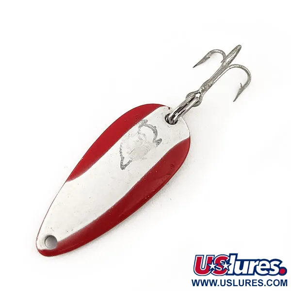 Mit einem Gewicht von flinken 3/16 oz (6 g) ist diese Eppinger-Kreation ein klassisches Beispiel für amerikanische Köderhandwerkskunst. Der 1 1/2" (3,5 cm) lange Metallkörper zeigt das ikonische rot-weiß gestreifte Muster auf der Vorderseite, akzentuiert durch das markante Teufelskopf-Logo, das in die Beschichtung eingestempelt ist. Auf der Rückseite findet sich die Gravur „DARDEVLE MIDGET U.S.A.“, ein Markenzeichen seiner Herkunft aus Dearborn, Michigan. Dieses spezifische Exemplar mit dem Produktcode 11159 befindet sich in exzellentem Zustand (Bewertung 5/5), mit glänzendem Finish und sauberer Hardware. Es ist mit einem stabilen Sprengring und einem einzelnen Drillingshaken ausgestattet. Die konkave Form dieses Löffelblinkers ist dasselbe Design, das Dardevle aufgrund seiner Zuverlässigkeit beim Werfen und Schleppen einen Platz in den Überlebenskits der Luftfahrt im Zweiten Weltkrieg einbrachte. Obwohl kleiner als der traditionelle Dardevle, erfüllt der Midget dieselben Konstruktionsstandards, die Lou Eppinger 1906 etablierte.