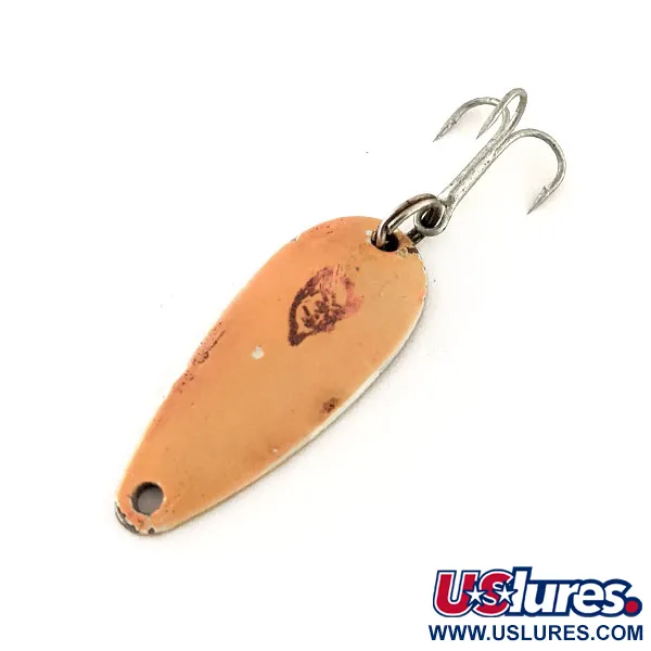 Auf der vernickelten Rückseite ist deutlich „DARDEVLE MIDGET U.S.A.“ eingestempelt, was diesen klassischen Eppinger Blinker kennzeichnet. Mit einer Länge von 3,5 cm (1 1/2") ist die Vorderseite in einem warmen Salmon-Farbton lackiert und zeigt das unverwechselbare schwarze Teufelskopf-Logo in der Mitte des konkaven Körpers. Dieses 6 g (3/16 oz) schwere Exemplar mit der Artikelnummer 11724 verfügt über die originalen Komponenten, einschließlich eines starken Sprengrings und eines scharfen, silbernen Drillings. Die vernickelte Rückseite bildet einen hellen Kontrast zur farbigen Vorderseite – eine Designentscheidung, die die Sichtbarkeit bei unterschiedlichen Trübungsgraden maximiert. Der Zustand wird mit 5/5 bewertet, wobei das Vintage-Modell durch eine saubere Stempelung und eine lebendige Lackierung besticht. Diese Blinker werden seit der Firmengründung durch Lou Eppinger in Detroit im Jahr 1906 mit eigenen Matrizen hergestellt, bevor der Betrieb 1959 nach Dearborn verlegt wurde. Jedes Detail, von der speziellen länglichen Krümmung bis hin zur Gewichtsverteilung, spiegelt über ein Jahrhundert amerikanischer Fertigungskompetenz für das Spinnfischen und Schleppangeln wider.
