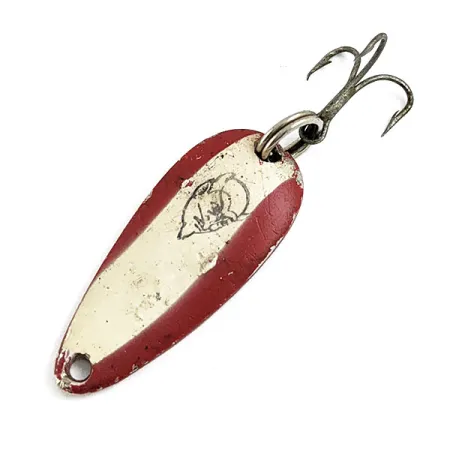 Mit einem Gewicht von 6 g (3/16 oz) präsentiert sich dieser Blinker im klassischen Red-Devil-Dekor auf einer vernickelten Basis. Mit einer Länge von 3,5 cm ist der Dardevle Midget ein bewährter Klassiker für das ultraleichte Angeln aus dem Hause Eppinger – einem Traditionsunternehmen, das 1906 von Lou Eppinger in Detroit gegründet wurde. Eine kleine Fisch-Grafik ist in den weißen Mittelstreifen eingeprägt, während die Rückseite des Metallkörpers deutlich die Prägung „DARDEVLE MIDGET U.S.A.“ trägt, was die Herkunft aus Dearborn, Michigan, bestätigt. Dieses Exemplar mit der Artikelnummer 17035 weist ehrliche Gebrauchsspuren in der Lackierung sowie Oberflächenkratzer auf, die einem Zustand von 4/5 entsprechen. Die konkave Form des Blattes wird durch eine silberfarbene Nickel-Unterseite ergänzt – eine Kombination, die sich besonders in klarem Wasser bewährt hat. Ein stabiler Drillingshaken ist mittels Sprengring sicher befestigt, während die vordere Öse für das direkte Anbinden oder die Verwendung eines Snaps bereitsteht.