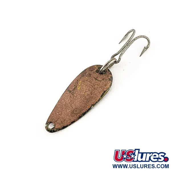 Mit einem Gewicht von nur 1/32 oz (1 g) ist dieser winzige Blinker eine hervorragende Wahl für Liebhaber von Ultra-Light-Ausrüstung. Die Vorderseite zeigt ein warmes Bronze-Finish (Messing), während die Rückseite eine polierte Nickeloberfläche aufweist, in die der Name "DARDEVLE SKEETER" deutlich eingestempelt ist. Mit einer Länge von 2,3 cm (1") besitzt dieses Exemplar die ikonische längliche Form, die seit den frühen Tagen des Unternehmens in Detroit ein Markenzeichen von Eppinger ist. Zur Ausstattung gehört ein kleiner Original-Drilling, der über einen stabilen Sprengring am Heck befestigt ist. Aufgrund des Alters wird der Zustand mit 4/5 bewertet, mit leichten Zeitspuren auf den Metalloberflächen, die den Vintage-Status bestätigen. Dieses Modell mit der Artikelnummer 12415 wurde in den USA mit den firmeneigenen Matrizen hergestellt, für die Lou Eppingers Unternehmen berühmt ist. Die konkave Bauweise wurde speziell für ein ausgeprägtes Laufverhalten entwickelt, ohne dass komplexe Montagen erforderlich sind.