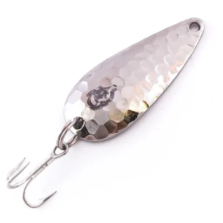 Die gehämmerte Vernickelung verleiht diesem klassischen Blinker eine zeitlose, lichtreflektierende Textur. Mit einer Länge von 4,5 cm (1 3/4") und einem Gewicht von 9 g (1/3 oz) ist dieses Exemplar ein Paradebeispiel für das Erbe der Firma Eppinger. Die Vorderseite zeigt das ikonische schwarze Teufelskopf-Logo, während auf der Rückseite tief "DARDEVLE SPINNIE DEARBORN MICH." eingeprägt ist, was die Produktion in die Ära nach 1959 nach dem Umzug der Marke aus Detroit datiert. Dieser Köder mit der Artikelnummer 3999 ist unbenutzt und behält seinen ursprünglichen Glanz auf der gesamten Metalloberfläche. Er ist mit einem stabilen Sprengring und einem scharfen Drilling ausgestattet, der für zuverlässige Würfe auf Forellen oder Barsche konzipiert wurde. Die konkave Tropfenform und die Gewichtsverteilung dieses in Michigan hergestellten Köders sind auf Weite und Präzision beim Wurf ausgelegt.