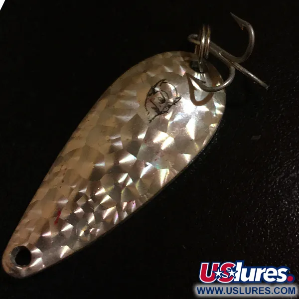 Ein facettiertes 'Crystal'-Finish zeichnet diesen Vintage-Blinker von Eppinger aus, ein Muster, das bereits in den 1980er Jahren eingestellt wurde. Mit einem Gewicht von 1/3 Unze (9 g) ist dieser Dardevle Spinnie Crystal (Artikelnummer 4408) ein klassisches Beispiel für amerikanische Köderkunst aus Dearborn, Michigan. Der 4,5 cm (1 3/4") lange, tropfenförmige Körper ist mit dem ikonischen Teufelskopf-Logo geprägt – ein Echtheitsmerkmal, auf das Sammler bei diesen in den USA hergestellten Modellen achten. Die reflektierende Oberfläche wurde entwickelt, um Lichtreflexe zu maximieren, wobei die markeneigenen Matrizen zum Einsatz kommen, für die Eppinger berühmt ist. Für einen Köder dieses Alters ist die Hardware robust geblieben, mit einem stabilen Sprengring und einem scharfen Drilling, der sich zum Werfen oder Schleppen eignet. Dieses Exemplar befindet sich in einem 5/5-Zustand und bewahrt einen sauberen und brillanten Glanz auf seiner strukturierten Oberfläche. Historisch gesehen wurden diese kleineren Spinnie-Modelle auf Vielseitigkeit ausgelegt und dienten oft als erste Wahl für Forellen oder Barsche, wenn ein kleineres Profil erforderlich war. Die konkave Innenseite des Löffels ist auf Hochglanz poliert und bildet einen Kontrast zur mehrwinkligen Außenseite, die das Licht aus jeder Richtung einfängt.