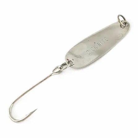 Deutlich mit dem Herstellernamen auf der Metallseite geprägt, repräsentiert dieses Exemplar ein klassisches Stück Angelgeschichte aus dem pazifischen Nordwesten der USA. Der Blinker misst kompakte 2,5 cm und wiegt leichte 1 g, was ihn zu einem spezialisierten Werkzeug für Liebhaber des ultraleichten Angelns macht. Mit einer sauberen Nickel-Beschichtung versehen, ist die dünnblättrige Konstruktion das Markenzeichen der Dick Nite Spoons – ein Design, dem seit über 60 Jahren vertraut wird. Dieses spezielle Modell mit dem Produktcode 24313 verfügt über einen Einzelhaken, der mit einem stabilen Sprengring verbunden ist – ein Setup, das wegen seiner Effektivität beim Bachangeln oder Schleppfischen auf Forellen und Kokanee-Lachse geschätzt wird. Das obere Ende besitzt eine einfache Drahtöse zur Schnurbefestigung oder zum Anschluss an einen Dodger. Die Metalloberfläche ist glänzend und sehr gut erhalten, was einer Zustandsbewertung von 5/5 entspricht. Obwohl er oft zum Driftfischen auf Lachse in Flusssystemen verwendet wird, eignet sich sein leichtes Profil ebenso gut zum Eisangeln oder zum Auswerfen mit Ultra-Light-Gerät.