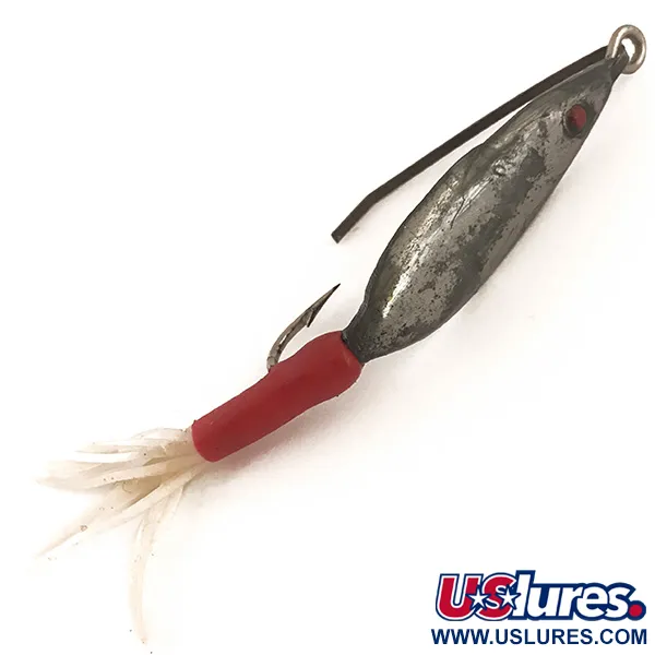 Mit einem Gewicht von 1/4 oz (8 g) ist der schwere Bleikörper dieses Hawaiian #3 gezielt darauf ausgelegt, auch dichten Bewuchs effektiv zu durchbrechen. Dieses Exemplar, identifizierbar durch den Produktcode 4743, verfügt über den originalen Draht-Krautschutz, der von der Schnuröse ausgeht und sich schützend über die Hakenspitze wölbt, um Hänger in hindernisreichen Stellen zu vermeiden. Ein auffälliger roter Schlauch auf dem Hakenschenkel setzt einen klaren Akzent zum silbernen Körper und schließt mit einem Bündel aus weißen Gummifäden ab. Bei einer Länge von 4,5 cm (1 3/4") zeigt der Köder sein original rot lackiertes Auge sowie die eingestanzte Markenbezeichnung auf der Rückseite. Das metallische Finish weist leichte, altersübliche Spuren auf, was einem Zustand von 4/5 entspricht, wobei die klassische Funktionalität voll erhalten bleibt. Produziert in den USA, verkörpert das Design Fred Arbogasts Spezialisierung auf Köder für das Angeln in dichten Seerosenfeldern und Geäst.