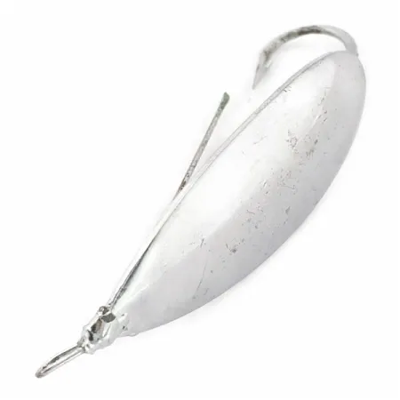 Dieser aus korrosionsbeständigem Messing gestanzte Blinker wurde für anspruchsvolle Bedingungen entwickelt. Der Herter's Olson Minnow besitzt eine schlanke, längliche Form von 2 1/4" (5,5 cm), die das Profil eines Beutefisches imitiert. Mit einem Gewicht von 1/4 oz (7 g) sorgt das Nickel-Finish für starke Lichtreflexe unter Wasser. Der Einzelhaken ist mit einem Krautschutz aus Metall ausgestattet, ideal für Würfe in Kraut oder Holz. Hersteller- und Modellkennzeichnungen sind direkt in die konkave Innenseite des Metallkörpers geprägt. Dieses Exemplar mit der Artikelnummer 24567 ist im Zustand 4/5 und weist eine saubere, reflektierende Oberfläche auf.