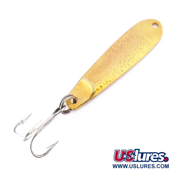 Ein Gewicht von 14 g (1/2 oz) verleiht diesem kompakten, 5,5 cm (2 1/4") langen Pirk die nötige Dichte für effektive vertikale Präsentationen. Die Metalloberfläche ist in gehämmertem Gold strukturiert und so konzipiert, dass sie das Licht beim Durchlaufen der Wassersäule in verschiedene Richtungen reflektiert. Der ikonische Name „HOPKINS SHORTY“ ist in die Oberfläche eingeprägt und unterstreicht die Herkunft als in den USA hergestellter Köder. Jeder Aspekt des Exemplars 10426 ist hervorragend erhalten, mit einer Zustandsbewertung von 5/5. Am Heck ist ein scharfer, silberner Drilling an einem robusten Sprengring befestigt, während der Kopf über ein vorgebohrtes Befestigungsloch verfügt.