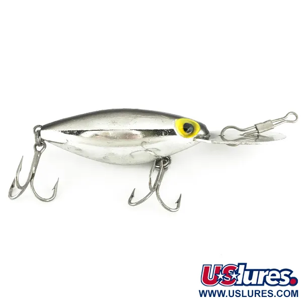 Die Mirror-Silver-Chrombeschichtung verleiht diesem Exemplar ein stark reflektierendes Erscheinungsbild, das ein Markenzeichen der frühen Storm-Produktion in den USA war. Mit einem Gewicht von 21 g (3/4 oz) und einer Länge von 8 cm (3 1/4") verfügt der Köder über eine übergroße Metall-Tauchschaufel, die mit THIN FIN, STORM und U.S. PAT. geprägt ist. Diese spezifische Hardware belegt die historische Herkunft vor der Übernahme der Marke durch Rapala. Der Körper ist mit zwei Drillingen ausgestattet und weist einen 5/5-Zustand auf, wobei der ursprüngliche Fabrikglanz erhalten geblieben ist. Markante gelbe Augen mit schwarzen Pupillen setzen einen kontrastreichen Akzent auf dem polierten Metallfinish. Dieses Modell mit der Artikelnummer 7217 ist für Tauchtiefen von 1,5 - 4 m (5-13 ft) beim Schleppangeln, Werfen oder Driften konzipiert.
