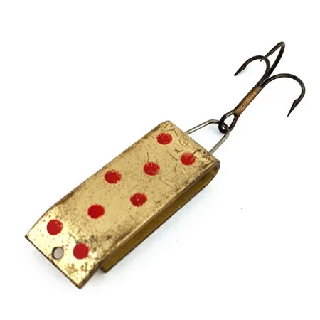 Die Goldbeschichtung sorgt für eine starke Reflexion als Basis für das markante rote Punktmuster dieses 4,5 cm langen Köders. Mit einem Gewicht von 9 g zeichnet sich der Jake's Lures Lil Jake durch seinen charakteristischen U-förmig gebogenen Korpus aus – ein Design, das die Vorzüge von Blinker und Spinner kombiniert. Bei der Ausstattung ist der Drillingshaken an einer stabilen Drahtöse befestigt, ein einfaches, aber bewährtes System, das typisch für diese US-Klassiker ist. Das Gold-Finish des Modells mit dem Produktcode 15954 weist leichte Gebrauchsspuren auf, wobei die Farbe der roten Punkte noch bemerkenswert kräftig ist, was einen soliden Zustand von 4/5 rechtfertigt. Durch sein im Vergleich zu herkömmlichen Blinkern breiteres und kürzeres Profil bleibt er auch in tiefem oder klarem Wasser gut sichtbar, was ihn zu einer verlässlichen Wahl für Forellen- und Lachsangler macht. Die vordere Bohrung ist sauber ausgeführt und bereit für einen Karabiner oder den direkten Knoten. Die Metalloberflächen zeigen einige ehrliche Kratzer, die seine Geschichte widerspiegeln, ohne die Stabilität des Köders zu beeinträchtigen.