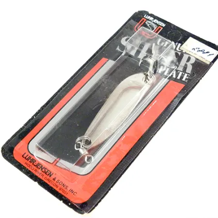 Echte Versilberung sorgt für eine reflektierende Brillanz, die die molekulare Anordnung von Silber nutzt, um tiefer in der Wassersäule aufzublitzen als Nickel- oder Chromalternativen. Dieser Luhr Jensen Krocodile Die #3 mit dem Produktcode 2881 wiegt 1/4 oz (7 g) und zeichnet sich durch das charakteristische schmale Profil aus, das für weite Würfe konzipiert wurde. Mit einer Länge von 2 1/4" (5.7 cm) ist der Blinker werkseitig mit einem vorderen Wirbel und einem scharfen Drilling ausgestattet. Hergestellt von Luhr Jensen & Sons, Inc. in Hood River, Oregon, ist dieser Artikel unbenutzt in der Originalverpackung. Auf der Rückseite der Karte befindet sich eine hilfreiche Grafik zum Binden eines verbesserten Clinch-Knotens sowie technische Hinweise zur Beschichtung. Der Zustand wird mit 6 bewertet, da der Köder originalversiegelt erhalten ist.