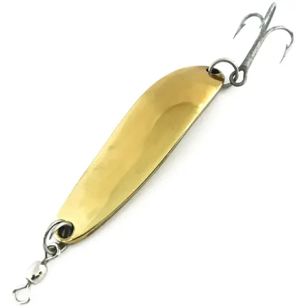 Auf der konvexen Seite des polierten, messingfarbenen Metalls ist der Name „Krocodile“ deutlich eingeprägt, was auf die Herkunft aus der Luhr Jensen Fabrik in Hood River, Oregon, hinweist. Dieses Die #3 Modell wiegt 1/2oz (14g) bei einer Länge von 2 1/4" (5,5cm) und ist ein vielseitiger Köder für Zielfische wie Seeforellen und Lachse. Das Gold-Finish dieses Exemplars mit dem Produktcode 8774 befindet sich in einem 5/5-Zustand und bewahrt seinen ursprünglichen Hochglanz. Der massive Metallkörper wurde für weite Würfe entwickelt und ist am Kopf mit einem Tönnchenwirbel zur Vermeidung von Schnurdrall sowie am Heck mit einem scharfen Drillingshaken ausgestattet. Die Prägung „Die #3“ bezeichnet die spezifische Gussform dieses klassischen, schmalen Blinkers – ein Detail, das Sammler von Vintage-Tackle von Luhr Jensen besonders schätzen. Robuste Sprengringe verbinden die Hardware und sorgen dafür, dass der Köder bereit für die Belastungen beim Spinnfischen oder Schleppangeln ist.