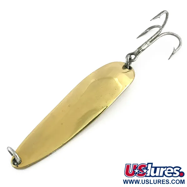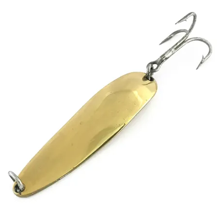 Mit einem Gewicht von 2/3oz (19g) ist das kompakte Profil dieses Metallblinkers ein Markenzeichen der Luhr Jensen Designphilosophie für extreme Wurfweiten. Mit einer Länge von 2 1/2" (6,5 cm) ist der Korpus aus massivem Messing in glänzendem, poliertem Gold gehalten, das das Licht effektiv reflektiert. Auf der Rückseite befindet sich die ikonische Tiefprägung, die ihn als "KROCODILE" Die #4 von Luhr Jensen aus Hood River, Ore., identifiziert – einem Ort, der für robustes Angelgerät aus dem pazifischen Nordwesten bekannt ist. Dieses Exemplar, Artikelnummer 8574, befindet sich in tadellosem Zustand (Bewertung 5/5). Die Hardware ist stabil, ausgestattet mit originalen Sprengringen und einem scharfen Drilling, der für kampfstarke Fische wie Lachse oder Seeforellen ausgelegt ist. Dank seiner schmalen und dicken Bauweise wird er besonders von Hafen- und Küstenanglern geschätzt, die bei Wind große Distanzen überwinden müssen. Die klassische Löffelform sorgt für ein zuverlässiges Taumeln beim Einholen, was ein grundlegendes Merkmal dieses Modells ist.