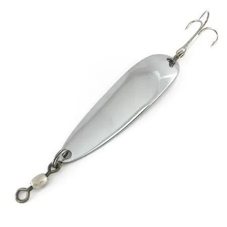 Dieser 23 g (3/4 oz) schwere Blinker ist ideal für weite Würfe und ein klassisches Beispiel für die Vielseitigkeit der Luhr Jensen Serie. Auf der konkaven Innenseite sind der Markenname und das Krocodile-Warenzeichen deutlich eingeprägt. Dieses Modell Die #5 mit der Artikelnummer 7579 hat eine Länge von 8,5 cm (3 1/4"). Das polierte Nickel-Finish ist in erstklassigem Zustand und bewahrt den ursprünglichen Glanz auf dem geschwungenen, tropfenförmigen Körper. Sammler werden die authentische amerikanische Handwerkskunst schätzen, da dieser Köder mit der für seine Ära typischen robusten Hardware ausgestattet ist, darunter ein hochwertiger Tönnchenwirbel und ein scharfer Drilling, der mit stabilen Sprengringen befestigt ist. Die Metalldicke bietet die nötige Dichte, um beim Einholen oder beim vertikalen Jiggen in der Nähe von Strukturen tiefere Wasserschichten zu erreichen. Jedes Detail, von den abgerundeten Metallkanten bis zur klaren Prägung der Herkunft aus Hood River, Oregon, spiegelt die Langlebigkeit wider, die diese Serie zu einem Standard in den Angelkisten von den Großen Seen bis zur Pazifikküste gemacht hat.