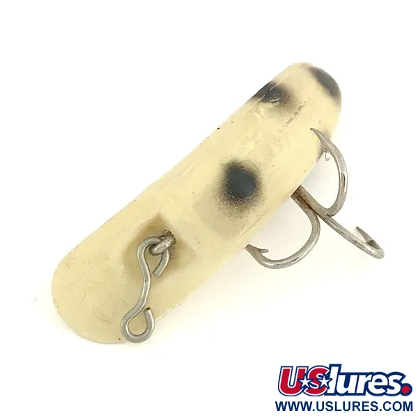 Mit seinem klassischen Weiß / Schwarz gepunkteten Muster gehört dieser 4,5 cm (1 3/4") lange Köder zu den kleineren Vertretern einer legendären Serie. Mit einem Gewicht von filigranen 2,3 g (3/32 oz) ist dieses Modell für Finesse-Techniken auf Forelle, Barsch oder Steelhead konzipiert. Luhr Jensen, ein Name, der eng mit dem Angeln im Pazifischen Nordwesten verbunden ist, hat diesen speziellen Kwikfish K5 (Artikelnummer 7809) in den USA gefertigt. Es handelt sich um ein schwimmendes Modell mit einer Lauftiefe von 1,2 m - 1,8 m (4 ft - 6 ft), was ihn sowohl für das Wurfangeln als auch für leichtes Schleppfischen vielseitig einsetzbar macht. Die Hardware umfasst einen am Bauch montierten Drillingshaken, während die Front durch eine markante S-förmige Schnuröse besticht – ein Markenzeichen des bananenförmigen Kwikfish-Körpers. Der Zustand ist hervorragend (5/5), mit einem sauberen Finish und gut gepflegten Metallteilen, die seinen Wert als funktionales Werkzeug für Lachs-, Hecht- und Ultraleicht-Angler unterstreichen.