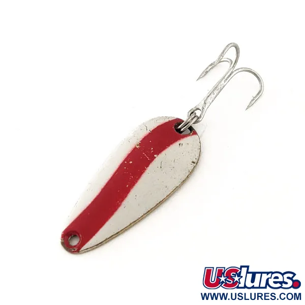 Die Prägung 'LEN THOMPSON No. 7' auf der Messingrückseite kennzeichnet diesen Blinker als echten Klassiker aus kanadischer Fertigung eines Herstellers, der bereits seit 1929 besteht. Ein auffälliger roter Wellenstreifen auf der weiß lackierten Vorderseite sorgt für ein kontrastreiches Muster, das die Aufmerksamkeit von Raubfischen wie Hechten oder Namaycush-Saiblingen auf sich zieht. Mit einer Länge von exakt 3,5 cm (1 1/2 Zoll) ist sein Tränenprofil ein vertrauter Anblick in den Köderboxen erfahrener Angler. Dank seines Gewichts von 5 g (3/16 oz) bietet er ein solides Gefühl beim Auswerfen oder leichten Schleppfischen unter verschiedenen Bedingungen. Die weiße Lackierung weist einige altersbedingte Kerben und Kratzer auf, was ihm eine solide 5/5 Zustandsbewertung einbringt. Bekannt für seinen charakteristischen langsamen Taumellauf, ist dieses Modell Nr. 7 eine zuverlässige Wahl für beißfaule Fische. Der Köder ist mit einem robusten silbernen Drillingshaken ausgestattet und wird unter dem Produktcode 11642 geführt.