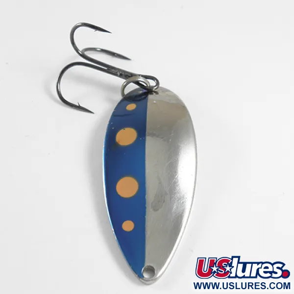 Dieser von Seneca produzierte Blinker mit einem Gewicht von stolzen 21g (3/4oz) besticht durch sein klassisches Finish in Blau / Rot / Nickel mit einem markanten blauen Panel und warmtonigen Punkten. Mit einer Länge von 6,5 cm (2 1/2") trägt dieses Exemplar den Produktcode 1745 und ist ein Paradebeispiel für das ursprüngliche Seneca Lure-Design, bevor die Marke Anfang der 1980er Jahre von Acme übernommen wurde. Auf der Rückseite ist die berühmte „Hula Girl“-Tänzerin und die Markierung „WIGL LURE“ tief eingeprägt – ein Detail, das bei Sammlern sehr begehrt ist, da sie in der Silhouette das Geheimnis des Ruhms dieses Köders sehen. Die polierte Nickeloberfläche und die Original-Hardware sind gut erhalten, was einer Zustandsbewertung von 4/5 entspricht. Der schwere Metallkörper ist mit einem robusten Drilling ausgestattet, während auf der Ober- und Unterseite das Gewicht und der kultige Name Little Cleo deutlich eingestempelt sind.