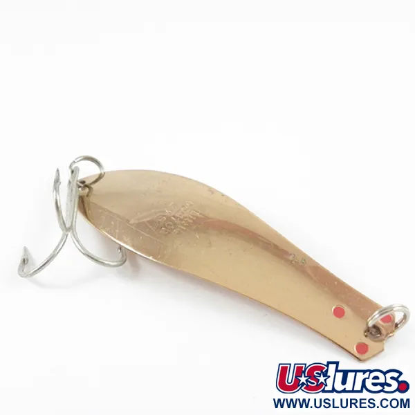 Polierte Kupferoberflächen verleihen diesem 21g (3/4oz) Blinker einen warmen, reflektierenden Glanz, der sofort ins Auge fällt. Bekannt als Little Doctor 275, Produktcode 2901, unterstreicht dieser Köder die klassischen amerikanischen Fertigungsstandards der Prescott Spinner Company. Mit einer Länge von 9cm (3 1/2") ist der Köder mit einem schlanken, länglichen Profil ausgestattet, das ideal für das Werfen oder Schleppfischen in verschiedenen Tiefen geeignet ist. Der Metallkörper weist dezente rote Akzente in der Nähe des Kopfes auf, die einen Kontrast zum Metallfinish bilden. Für Sammler ist der Zustand von 5/5 an den außergewöhnlich sauberen Oberflächen und dem gut erhaltenen silberfarbenen Drilling erkennbar. Ein stabiler Sprengring an der Öse vervollständigt die Hardware dieses in den USA hergestellten Modells, das über seine gesamte Länge von 9cm (3 1/2") bemerkenswert gut erhalten geblieben ist.