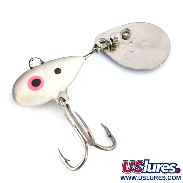 Nickel / Weiß-Veredelungen prägen den Bleikörper dieses klassischen 14g (1/2oz) Tail-Spinners. Mit einer Länge von 4cm (1 1/2") ist dieser Mann's Bait Company Little George (Artikelnr. 10231) ein Paradebeispiel für die amerikanische Designgeschichte von Tom Mann. Der Bleikörper verfügt über ein kontrastreiches Auge mit pinkfarbenem Rand und einen kleineren schwarzen Punkt, kombiniert mit einem gehämmerten Nickel-Colorado-Blatt am Heck für maximale Lichtreflexion. Der Zustand dieses Exemplars ist exzellent und rechtfertigt eine 5/5-Bewertung mit sauberer Lackierung und glänzenden Metallteilen. Entwickelt für Tiefwassertechniken wie vertikales Jiggen oder weite Würfe, gewährleistet die schwere Bleikonstruktion eine schnelle Sinkrate. Der Köder ist mit einem bauchmontierten Drilling und einer oben liegenden Schnuröse ausgestattet, was die Stabilität beim Einholen garantiert.