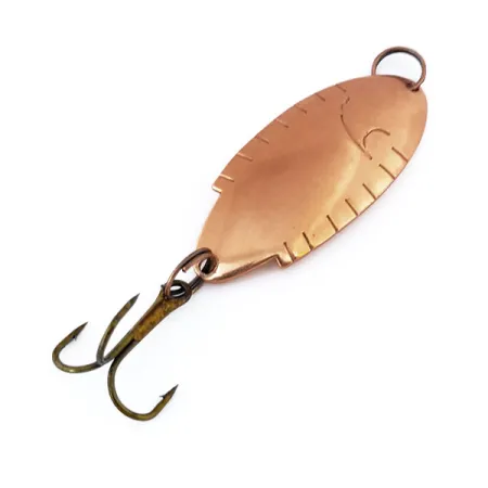 Mit der ikonischen Prägung "LUHR JENSEN USA" auf der Rückseite unterstreicht dieser 7g (1/4oz) Blinker die handwerkliche Qualität der amerikanischen Produktion der Marke. Der 4,5 cm (1 3/4") lange Körper besticht durch ein warmes Kupfer-Finish, ergänzt durch markante Prägungen, die Kiemen und Schuppen entlang der Kanten darstellen. Für Angler, die es auf Forellen oder Barsche abgesehen haben, eignet sich das Gewicht dieses Modells ideal zum Werfen oder für leichtes Schleppfischen. Die Hardware ist in ausgezeichnetem Zustand (Bewertung 5/5) und verfügt über einen scharfen Drilling, der mittels Sprengring befestigt ist. Das schlichte, effektive Design des Blattes ist typisch für das Luhr Jensen Sortiment und setzt auf Funktionalität und Langlebigkeit. Dieses spezifische Modell mit dem Produktcode 10849 bewahrt seinen ursprünglichen Glanz auf der gesamten Kupferoberfläche.