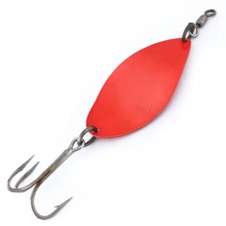 Mit einer Länge von 7,5 cm (3") verfügt dieser klassische Metallblinker über ein auffälliges Fluorescent Pink-Finish, das unter UV-Licht tief orangerot leuchtet. Mit einem Gewicht von 14 g (1/2 oz) stammt der Manistee 4 UV aus der Ära vor der Fusion von Luhr Jensen mit Rapala und repräsentiert eine Zeit, in der diese Köder noch in den USA hergestellt wurden. Die leuchtend rosa Beschichtung bedeckt eine klassische Tropfenform, die zum Auswerfen oder Schleppfischen konzipiert ist. Ausgestattet mit robuster Hardware, verfügt das Exemplar über einen Drillingshaken an einem verstärkten Sprengring und einen Tönnchenwirbel an der vorderen Öse, um Schnurdrall zu verhindern. Dieser spezielle Köder mit dem Produktcode 10750 befindet sich in einem 5/5-Zustand mit einem glänzenden, gleichmäßigen Finish und sauberen Metalloberflächen.