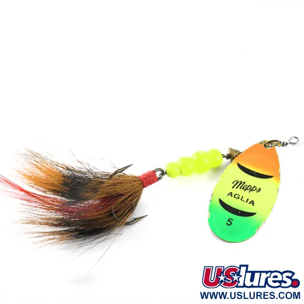 Museumsarchiv: Mepps Aglia Fluo 5 dressed Spinner, Messing/Fluo, 12g, Haar, #1122