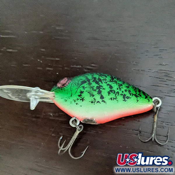 Mit einer Länge von 6 cm (2 1/4") präsentiert dieses Exemplar die kräftigen Farbpaletten, die typisch für die amerikanische Angelgeräteherstellung der Jahrhundertmitte sind. Dieser 10 g (1/3 oz) schwere Natural Ike, geführt unter der Artikelnummer 16299, verfügt über einen leuchtend grünen Rücken, der stark mit schwarzen Punkten gesprenkelt ist und in eine hell orange-rote Unterseite übergeht. Nach dem Wechsel von handgeschnitztem Holz zu robustem Kunststoff im Jahr 1960 bewahrt dieser Köder das klassische Profil, das von Joseph Kautzkys Kautzky Manufacturing Company in den USA etabliert wurde. Die transparente Tauchschaufel ist direkt in den Kopf integriert und darauf ausgelegt, tiefere Wasserschichten anzusprechen. Jede Komponente, von den originalen Drillingshaken bis hin zu den Metallösen, spiegelt die Fertigungsstandards der ursprünglichen Marke Lazy Ike wider. Das Finish ist weiterhin kräftig und unversehrt, was diesem Stück eine Zustandsbewertung von 5/5 einbringt. Kleine Details wie die Positionierung der Augen und die spezifische Dichte der Sprenkelung kennzeichnen den Versuch der „Natural Ike“-Serie, Signalfarben mit organischen Mustern zu verschmelzen.