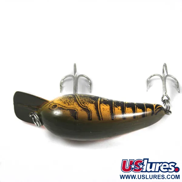 Garnelenähnliche Markierungen und dunkle vertikale Streifen prägen das optische Profil dieses 8g (1/4oz) schweren Crankbaits. Dieser Norman Little N mit dem Produktcode 0391 misst 5,5 cm (2 1/4") und nutzt seinen auftreibenden Körper, um bei Pausen an die Oberfläche zurückzukehren. Das Exemplar ist in ausgezeichnetem Zustand (Bewertung 5/5), komplett mit Original-Hardware und einem klaren, unbeschädigten Finish. Im Inneren sorgt eine Geräuschkammer für einen rasselnden Sound beim Einholen. Er wurde sowohl zum Werfen als auch zum Schleppangeln entwickelt und erreicht Lauftiefen von bis zu 1,8 m (6ft). Die klare Tauchschaufel ist fest am Vorderteil montiert und so geformt, dass sie das Abtauchen auf die Zieltiefe von 1,8 m (6ft) optimal unterstützt.
