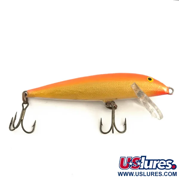Dieser in Finnland gefertigte Balsaholzköder hat eine Länge von 9 cm (3 1/2") und besticht durch sein markantes Dekor in Orange und Gold. Die UV-reaktive Beschichtung ist ein herausragendes technisches Merkmal, das unter ultraviolettem Licht leuchtet, um die Sichtbarkeit in tieferen oder trüben Gewässern zu erhöhen. Mit einem Gewicht von 12 g (2/5 oz) wird dieses Modell unter dem Produktcode 6471 geführt und ist als sinkender Köder konzipiert, der Tiefen von 0,3 m (1 ft) bis 3,9 m (13 ft) erreicht. Die Ausstattung umfasst zwei scharfe Drillinge und eine klare, geprägte Tauchschaufel. In seinem 5/5-Zustand präsentiert sich das Exemplar mit einem sauberen, kräftigen Finish und gepflegter Hardware. Er eignet sich sowohl zum Werfen als auch zum Schleppfischen und wird häufig für die Jagd auf Salmoniden, Barsche und Zander eingesetzt.