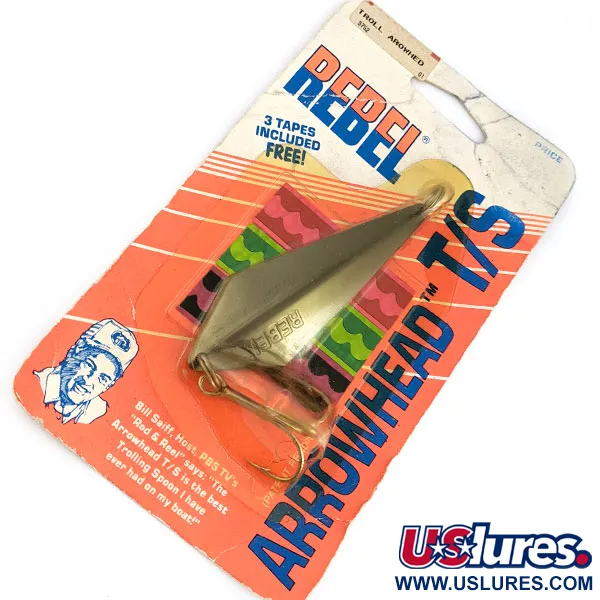 Mit einem Gewicht von 17 g (3/5 oz) zeichnet sich dieser Vintage-Schlepplöffel durch sein markantes rautenförmiges Profil aus, das die Spezialserie der Marke Rebel in den frühen 1990er Jahren prägte. Die Packung, gekennzeichnet durch den Produktcode 22094, enthält das Modell Arrowhead T/S, wobei das Suffix auf den speziellen Einsatz beim Schleppfischen hinweist. Während der Blinker selbst ein poliertes Metallic-Finish aufweist, bezieht sich die Farbbezeichnung auf die drei beiliegenden Klebefolien – inklusive schwarzer und mehrfarbiger Muster – mit denen Angler die Reflexion des Köders an unterschiedliche Lichtverhältnisse anpassen können. Auf der Verpackung von Bill Saiff aus der PBS-Fernsehserie „Rod & Reel“ empfohlen, wurde der 9 cm (3 1/2") lange Körper speziell für den effektiven Einsatz hinter einem Downrigger oder einer Tauchscheibe entwickelt, um im Freiwasser stehende Raubfische zu erreichen. Dieses Exemplar ist unbenutzt und in der originalen, urheberrechtlich geschützten Blisterverpackung erhalten, was die von einer PRADCO-Marke erwartete Qualität unterstreicht. Die Ausstattung besteht aus einem stabilen Drillingshaken, der mit einem robusten Sprengring befestigt ist, konzipiert für die harten Anforderungen beim Angeln auf Königslachs, Steelhead oder Seeforelle mit mittelschwerem Gerät.
