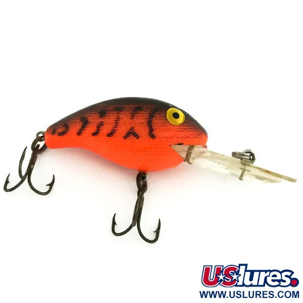 Mit einer Länge von exakt 5 cm (2") ist dieser kompakte Crankbait ein fester Bestandteil der US-amerikanischen Geschichte der Tiefläufer. Das Finish Tiger (Red) ist besonders auffällig und besticht durch eine kräftige orangerote Basis mit dunklen vertikalen Streifen und leuchtend gelben Augen am Kopf. Hergestellt von Rebel in den USA, trägt dieses Exemplar den Produktcode 7273 und ist mit einer großen, klaren Tauchschaufel ausgestattet, die für Tiefen von 2,4–3,0 m ausgelegt ist. Mit 10,5 g (3/8 oz) ist das Gewicht ideal, um die Tiefe sowohl beim Werfen als auch beim Schleppfischen zu halten. Zur Ausstattung gehören zwei originale Drillingshaken, die nur minimale Alterserscheinungen aufweisen. Dieser Köder befindet sich in einem exzellenten Zustand (Bewertung 5/5) mit einer gut erhaltenen Lackierung und einer klaren, ungetrübten Schaufel.