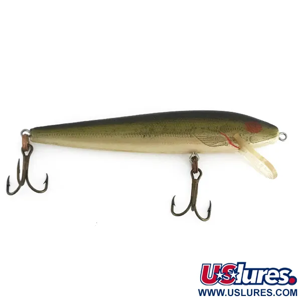 Im klassischen Bass-Dekor gehalten, zeigt dieses 9 cm (3 1/2") lange Exemplar das detaillierte Schuppenmuster und den Seitenlinien-Druck, für den Rebel berühmt wurde. Mit einem Gewicht von 6,5 g (1/4 oz) ist der Rebel Floater (Produktcode 7952) ein fester Bestandteil der amerikanischen Angelgeschichte, gefertigt aus robustem Kunststoff in den USA. Seine klare Tauchschaufel ist so konstruiert, dass sie Tiefen zwischen 0,9 m (3 ft) und 1,8 m (6 ft) erreicht, was ihn vielseitig für das Spinnfischen und Schleppangeln macht. Das Lackfinish dieses Modells ist in exzellentem 5/5-Zustand und weist einen tiefen Oliv-Verlauf auf dem Rücken sowie eine dezente cremefarbene Unterseite auf. Beachten Sie den markanten roten Akzent am Kiemendeckel, ein charakteristischer optischer Reizpunkt dieses Modells. Ausgestattet mit zwei originalen Drillingen, eignet er sich hervorragend für das konstante Einholen oder die Stop-and-Go-Technik. Die Hardware ist glänzend und verschleißfrei, wodurch die vom Hersteller beabsichtigte Ästhetik bewahrt bleibt.