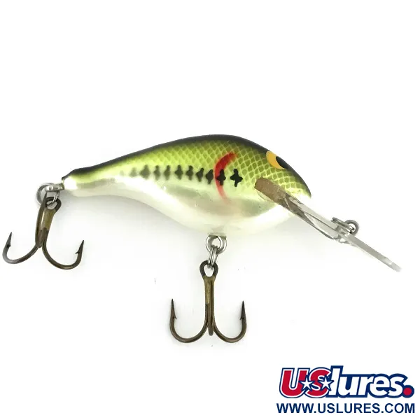 Die Verwendung von Jelutong-Holz verleiht diesem Renegade Little Diver einen klassischen Auftrieb und eine Dichte, die ihn deutlich von modernen Kunststoffködern abhebt. In einem Zustand von 5/5 weist dieses Exemplar eine bemerkenswerte Erhaltung seines Green Fire Tiger-Dekors auf, mit scharf gezeichneten schwarzen Kreuzschraffuren und einem markanten roten Kiemenstreifen. Mit einem Gewicht von 11 g (2/5 oz) und einer Länge von 6 cm (2 1/4") ist dieser Wobbler eine erstklassige Wahl für das Angeln auf Döbel, Barsch oder Rapfen. Ein technisches Highlight ist die UV-reaktive Beschichtung; unter ultraviolettem Licht strahlt der Körper ein helles fluoreszierendes Grün aus – ein entscheidendes Detail für die Sichtbarkeit in tieferen oder trüben Gewässern. Dieser spezifische Köder trägt den Produktcode 8498 und ist für eine Tauchtiefe von 2 m (6,5 ft) ausgelegt. Die breite, klare Tauchschaufel ist fest im Kopf verankert, und die Hardware besteht aus zwei scharfen, originalen Drillingshaken mit Bronze-Finish. Jedes Exemplar dieser Serie wurde einzeln von Hand bearbeitet, was sich in der präzisen Ausrichtung der Schuppenmuster und der Platzierung der gelb umrandeten Augen widerspiegelt.