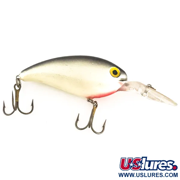 Graue und schwarze Farbtöne dominieren die Oberseite dieses Renegade Deep Pro Series und erzeugen einen natürlichen Verlauf, der in einen sauberen weißen Bauch übergeht. Mit einem Gewicht von 1/2 oz (14 g) ist der Köder für die Erkundung tiefer Gewässer sowohl durch Werfen als auch durch Schleppangeln konzipiert. Der 2 3/4" (7 cm) lange Körper verfügt über einen markanten roten Kehlakzent, ein visueller Reiz, der ein verletztes Beutetier simulieren soll. Eine große, klare Tauchschaufel ist in den Kopf integriert, um seine Tiefläufer-Eigenschaften zu unterstützen. Für Angler, die auf Geräusche setzen, verfügt dieses Modell über ein internes Rasselsystem, um während des Einholens ein Geräuschprofil zu erzeugen. Das Setup besteht aus zwei dunkel brünierten Drillingen, die in hervorragendem Zustand sind. Am Kopf sind die gelben Augen mit schwarzen Pupillen sauber in die grauen Schuppen eingefasst. Hergestellt in den USA, trägt dieses Exemplar den Produktcode 8208 und ist im Zustand 5/5 erhalten. Das glatte Finish und die intakte Lackierung des abgerundeten Profils machen ihn zu einem soliden Vertreter der Pro Series-Reihe.