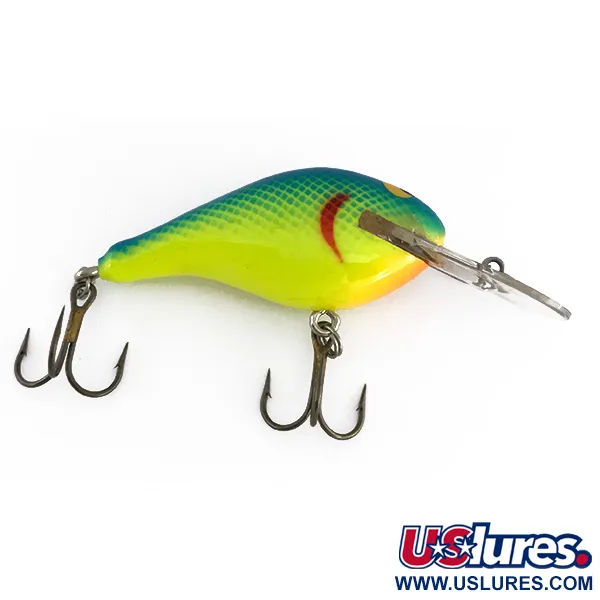 UV-reaktive Chartreuse-Pigmente zeichnen das handgefertigte Äußere dieses 6 cm langen Modells aus, dessen handwerkliche Qualität tief in der amerikanischen Fertigung verwurzelt ist. Gefertigt aus Jelutong-Holz, bringt der Renegade Little Diver (Code 8051) ein Gewicht von 11 g auf die Waage, was für gezielte Würfe auf Arten wie Döbel, Rapfen und Barsch optimal ausbalanciert ist. Das visuelle Design umfasst einen geschuppten Farbverlauf von Grün nach Gelb an den Flanken, akzentuiert durch eine markante rote Kiemenmarkierung und große gelbe Augen, die kontrastreiche Fixpunkte bieten. Eine klare, breite Tauchschaufel ermöglicht es dem Köder, beim Einholen Tiefen von bis zu 2 m zu erreichen. Das Finish ist bemerkenswert sauber, zeigt den ursprünglichen Glanz der Lackierung sowie die Integrität der Hardware, was zu einer Zustandsbewertung von 5/5 führt. Beide Drillinge sind sicher über Sprengringe befestigt, was die strukturelle Einsatzbereitschaft des Köders gewährleistet.