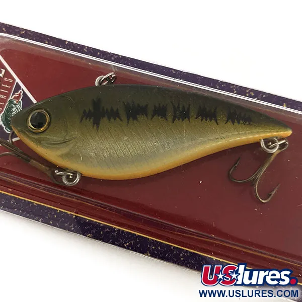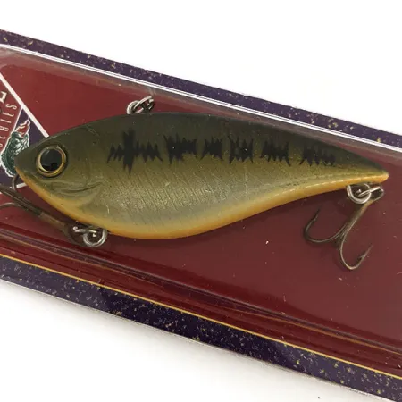 Ein dezenter olivgrüner Rücken geht bei diesem Lipless Crankbait in einen blassgoldenen Bauch über und imitiert ein Baby Bass-Muster mit markanten dunklen vertikalen Markierungen entlang der Seitenlinie. Mit einem Gewicht von 1/2 oz (14 g) ist der Renegade Pro Series (#12923) ein sinkender Köder, der für eine variable Tiefenkontrolle konzipiert wurde und es Anglern ermöglicht, verschiedene Wasserschichten abzusuchen. Bei einer Länge von 2 3/4" (7 cm) verfügt der Körper über ein Mehrkammersystem, das eine interne Rassel zur akustischen Lockwirkung beherbergt. Die Ausstattung umfasst originale Eagle Claw Drillinge, die über Edelstahl-Sprengringe befestigt sind. Dieses Exemplar befindet sich in unbenutztem Zustand und bewahrt die originalen handgemalten Details sowie die holografischen Schuppen. Er eignet sich sowohl zum Werfen als auch zum Schleppen und zielt auf Fischarten von Barsch und Zander bis hin zu Hecht und Forelle ab. Die Schnurbefestigung befindet sich auf der Oberseite des Kopfes, typisch für diesen Lipless-Stil, wodurch die Nase beim Einholen nach unten geneigt bleibt.