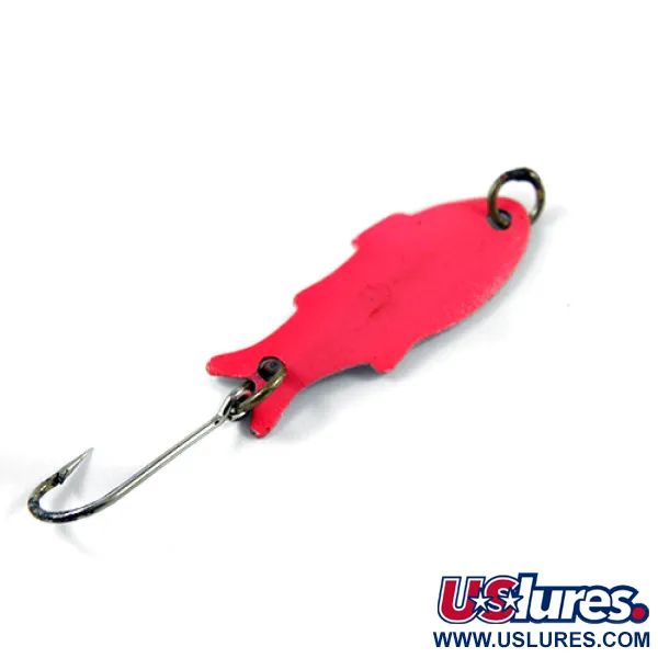 Ein kräftiges rotes Finish ziert die Oberseite dieses fischförmigen Köders und bildet einen klaren Kontrast zur weißen Unterseite. Die in den USA von Shoff's hergestellte Triple Teazer (Modellnummer 2420) ist mit nur 1/32 Unze (1,1 g) ein echtes Leichtgewicht. Der 1 1/4" (3 cm) lange, gestanzte Metallkörper verfügt über ein markantes Profil mit dezenten Flossenumrissen, die direkt in das Metall geprägt wurden. Zur Ausstattung gehören einfache, funktionale Sprengringe an beiden Enden, die einen scharfen Einzelhaken für das ultraleichte Spinnfischen oder Jiggen halten. Der Zustand wird mit 4/5 bewertet, mit nur geringen Altersspuren, während der Haken glänzend bleibt und der Farbübergang von Rot zu Weiß an den Kanten sauber definiert ist.