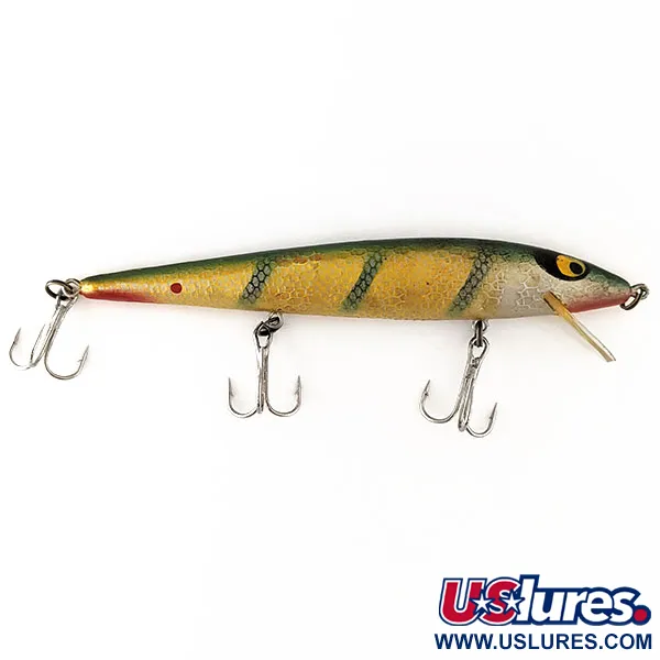 Barsch-Dekor mit vertikalen Streifen auf einem warmen Goldkörper prägt die Ästhetik dieses Smithwick Suspending Rattlin’ Rogue. Mit der Artikelnummer 11173 wiegt dieser 12,07 cm lange Köder 11,34 g und ist ein fester Bestandteil der US-Angelgeschichte. Das Finish ist in hervorragendem Zustand (Bewertung 5/5) und betont die rot gefärbte Kehle sowie die ikonischen übergroßen gelben Augen mit schwarzen Pupillen. Als schwebendes Modell (Suspending) mit internen Rasseln konzipiert, verharrt er neutral in der Wassersäule. Beim Auswerfen erreicht er Tiefen von 0,3 m bis 2 m, während er beim Schleppangeln auf 3 m bis 4 m abtaucht. Er ist mit drei Drillingen und einer klaren, abgerundeten Tauchschaufel ausgestattet.